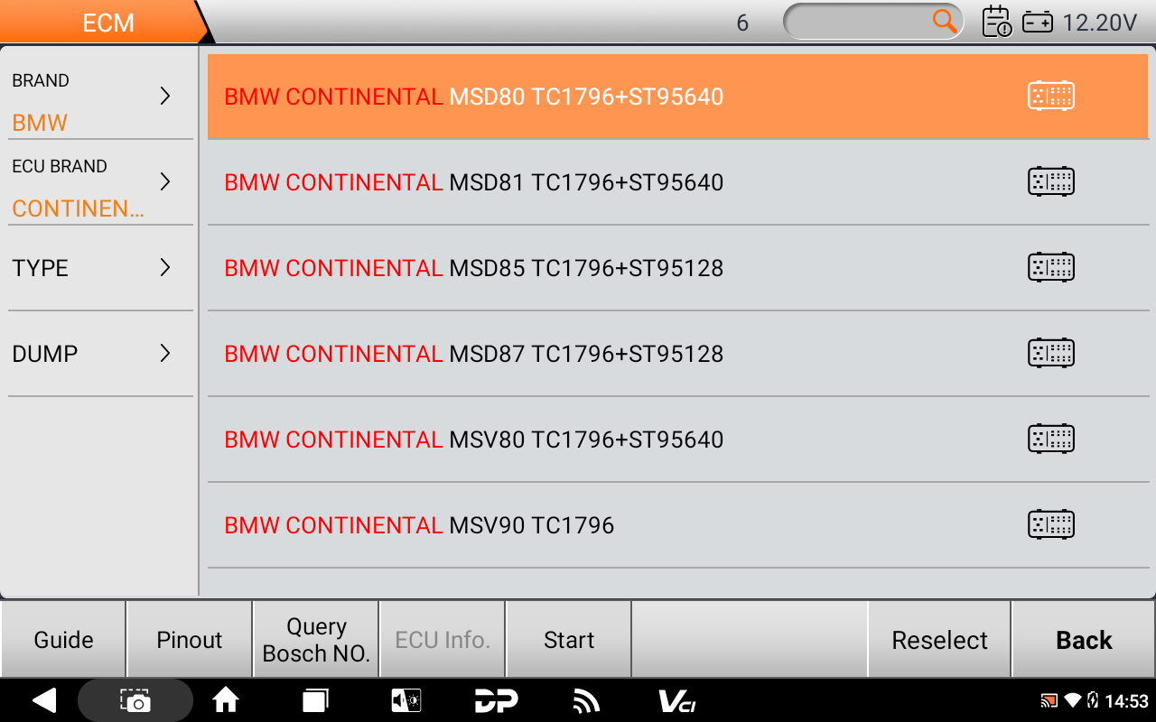 בדוגמה שבצילום רואים רשימה של מחשבי BMW (דגמי MSD80, MSD81 וכו'). אלו מחשבי מנוע ידועים של ב.מ.וו שנוטים להתקלקל. הפונקציה הזו מאפשרת לך: