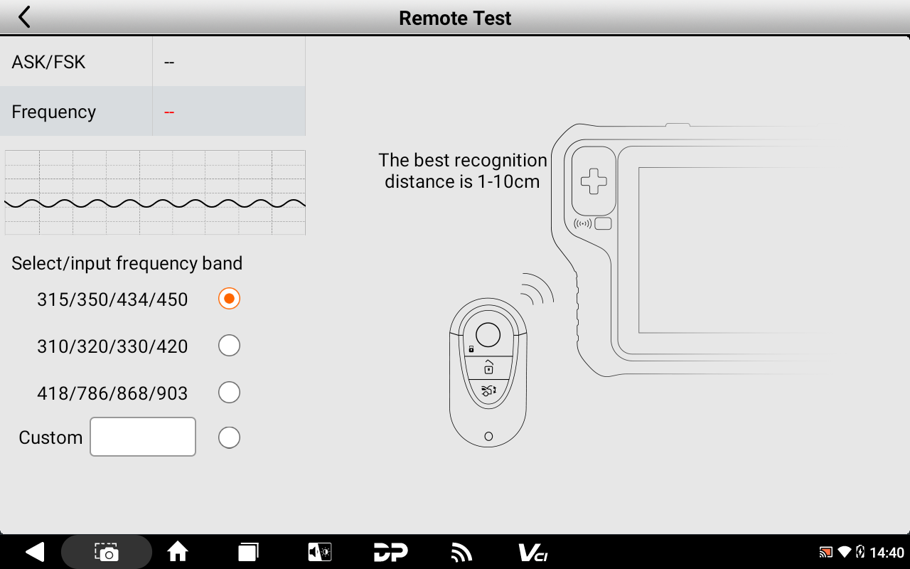 בדיקת תדר (Frequency Check): המכשיר מזהה על איזה תדר השלט משדר (למשל 315MHz, 433MHz או 868MHz). זה קריטי כדי לדעת איזה שלט חדש להזמין או להתאים ללקוח, שכן שלט בתדר לא נכון לא יעבוד.
