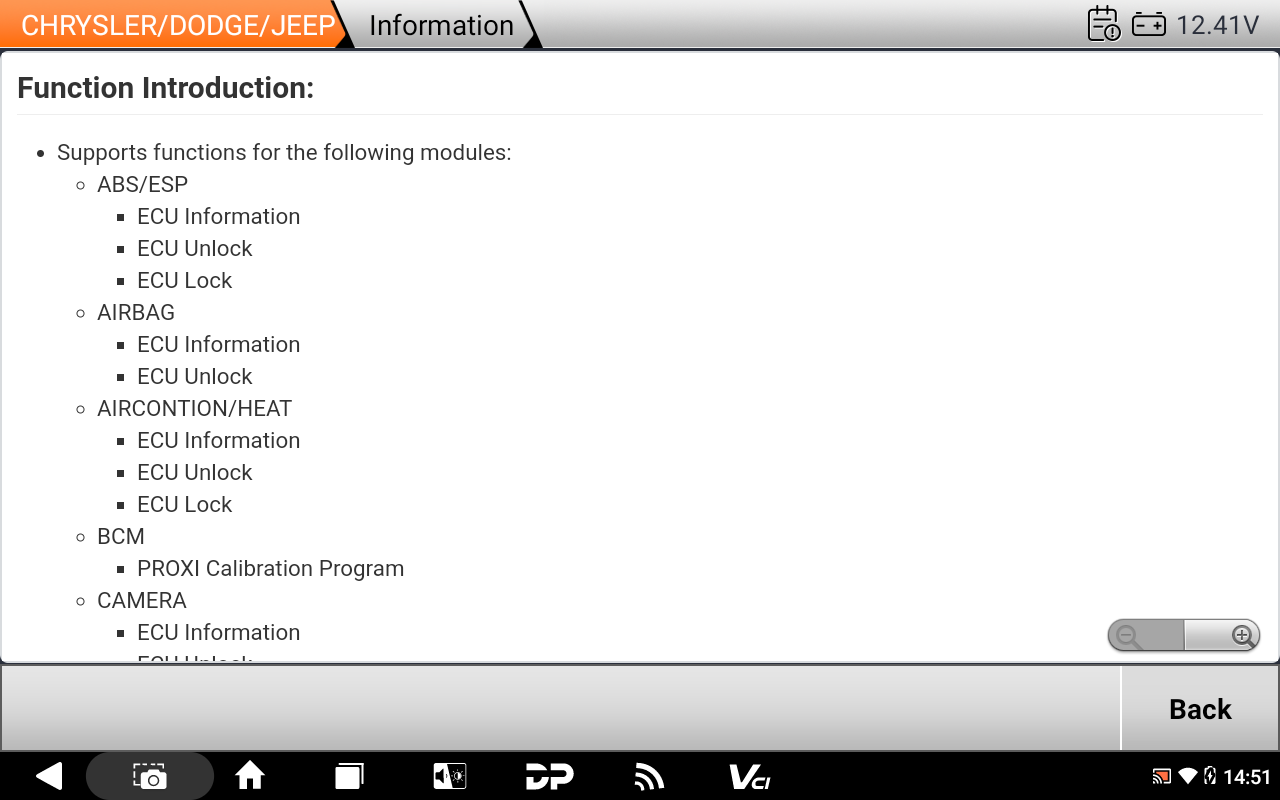 - טיפול במודולים נוספים (לא רק מנוע): אם תסתכל למטה בתמונה, כתוב "Supports functions for the following modules: ABS/ESP". זה אומר שהמכשיר יודע לטפל גם במחשבי ABS (מערכת הבלימה) ומערכות יציבות, שלעיתים דורשים קידוד או החלפה וקשורים למערכת ההגנה של הרכב.