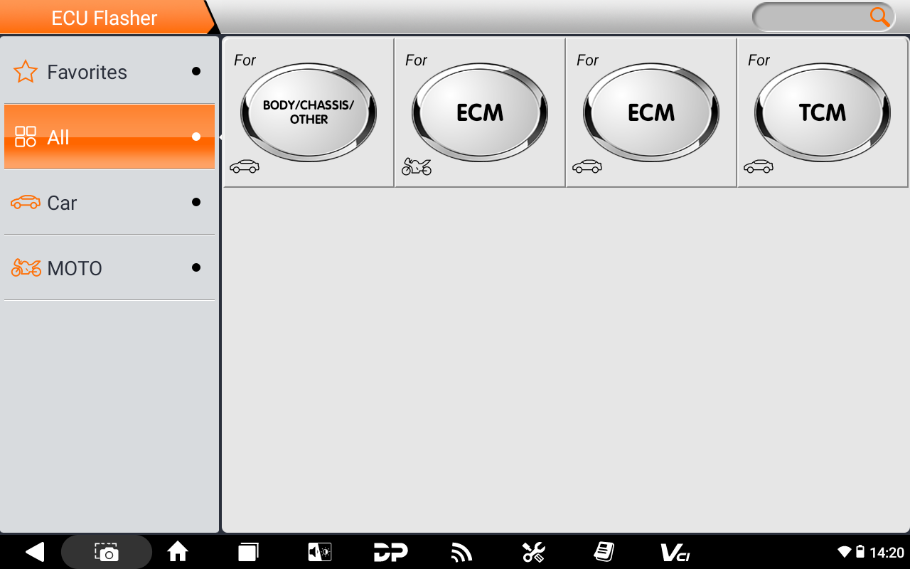 יש אייקון של אופנוע (MOTO) ואייקון של רכב (Car) – כלומר, המכשיר תומך בצריבת מחשבים גם לאופנועים וגם לרכבים.